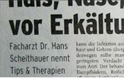 „Hals, Nase, Ohr: Vorsicht vor Erkältung und Infekt“, AZ, 19./20. Dezember 1998
